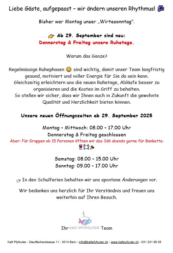 Stauffacherstrasse 11 – 3014 Bern – info@kafipfyfouter.ch – www.kafipyfouter.ch – 031 331 95 05
