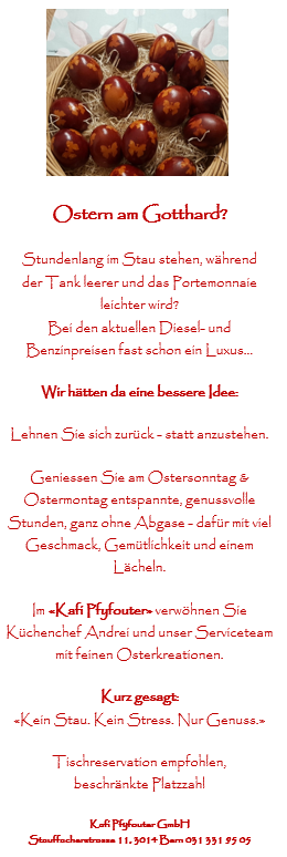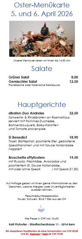 geniessen Sie im Kafi Pfyfouter ein gemütliches Ostermenü